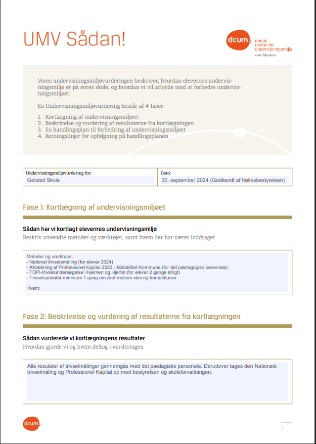 Her kan man se Gelsted Skoles undervisningsmiljøvurdering: